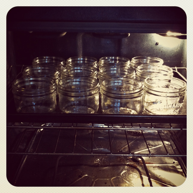 I cleaned all of the jars and placed them into the oven to sterilize for 15 min…