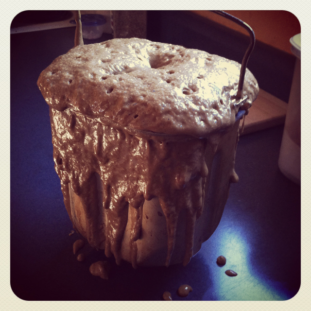 Onto second GF breadmaker recipe story. This one was for aĀ pumpernickelĀ which we’ve made with regular flour before and I love. Sooo, since I had made one GF loaf so far and it worked just fine I figured this should be easy! When the ‘dough’ cycle ended I opened the lid to see how much the bread had risen and couldn’t believe what I saw.