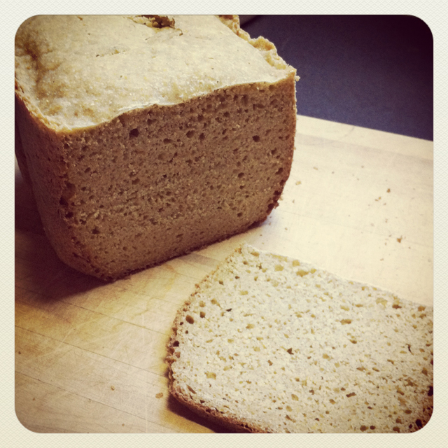 It was a bit of a challenge to figure out the bread machine recipe as it begins on the ‘dough cycle’. Then, after the first mix you remove the paddle which is a messy business to say the least. Then you wait for that cycle to end. You reset the breadmaker to the GF cycle. Really? A breadmaker has a GF cycle? Hunh…