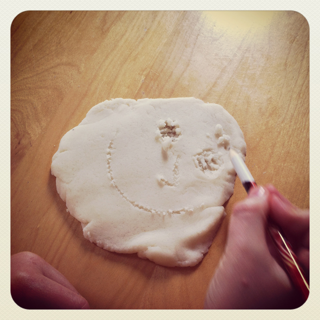 I got the recipe from a great book called, “Slow and Steady, Get me Ready“. The book is meant to be used on a weekly basis from birth to age 5. Well, whatever, I say! I had the best intentions with that but perhaps used it three times since X was born. So, I decided to flip through it to find what may be of interest and there are still a great many fun ideas for kids. Who says clay is only for babies, right? I love it, too and so will you (I hope!)