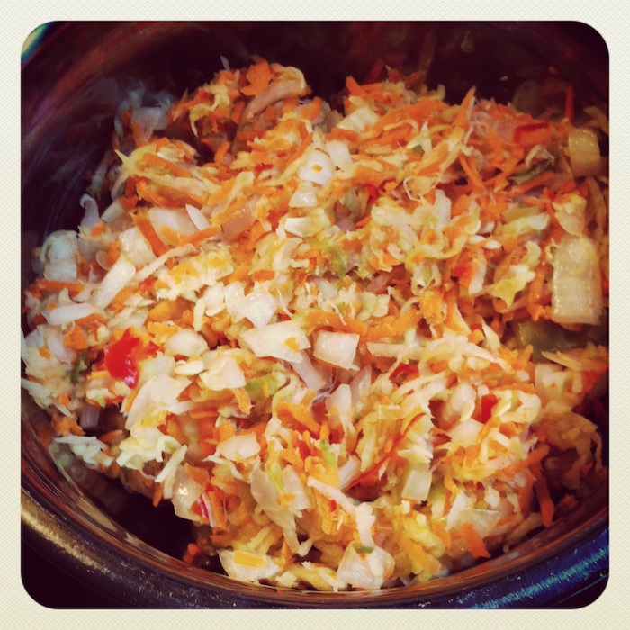 Aaanyway, here are some pics along the way. The first pic looks so good already what with the zucchini, carrots and I forget what else (!) mixed in. Kind of like an alternative coleslaw. Raw zucchini is sooo good!