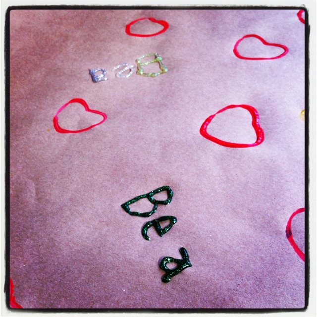 When B opened her gift she immediately wrote a huge heart on the paper and attempted to thank you. She put “S” and “T” on it instead spelling out your names. I thought it was great that she thought of that.